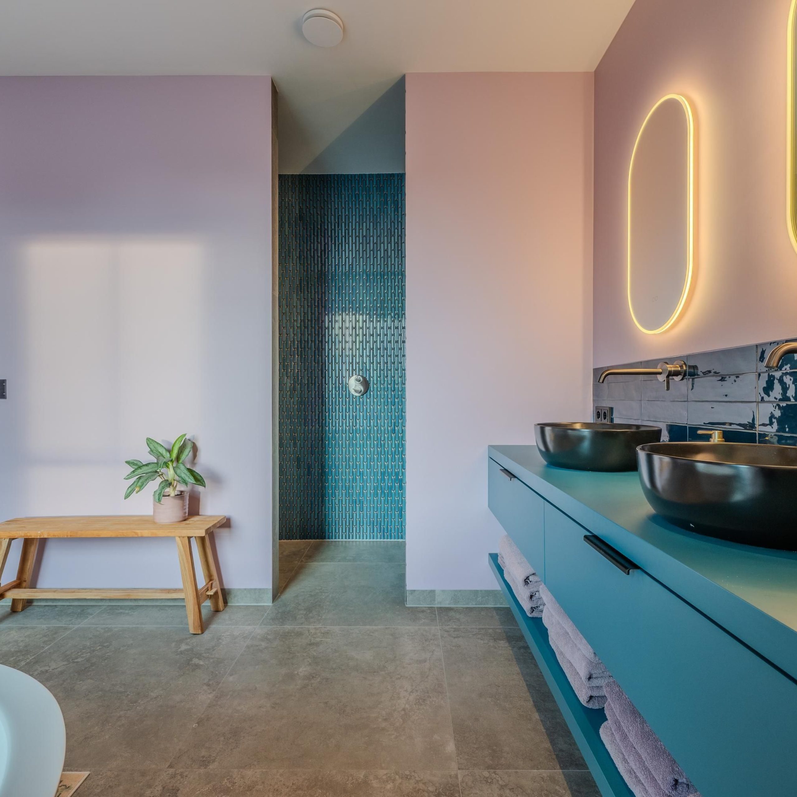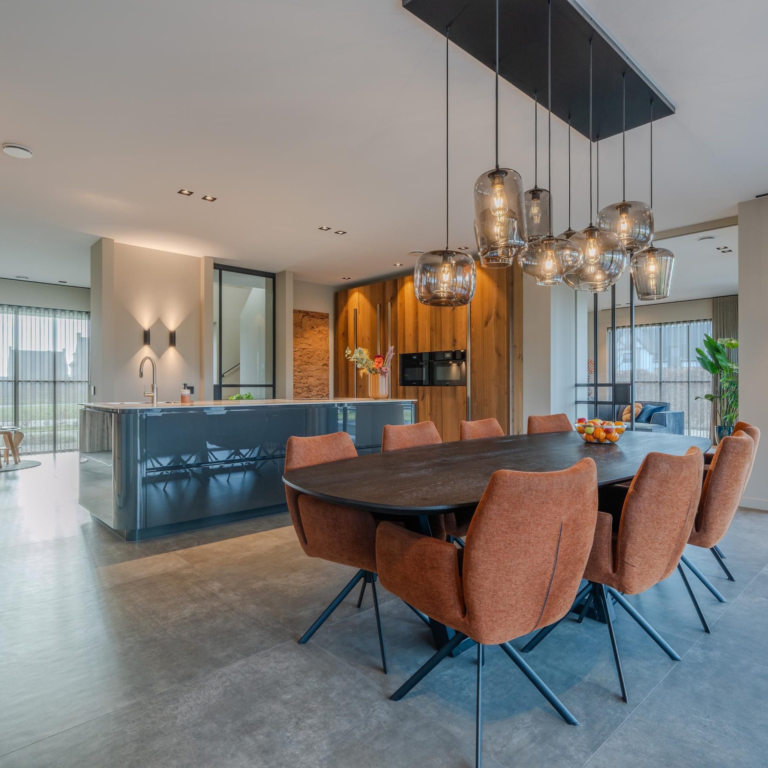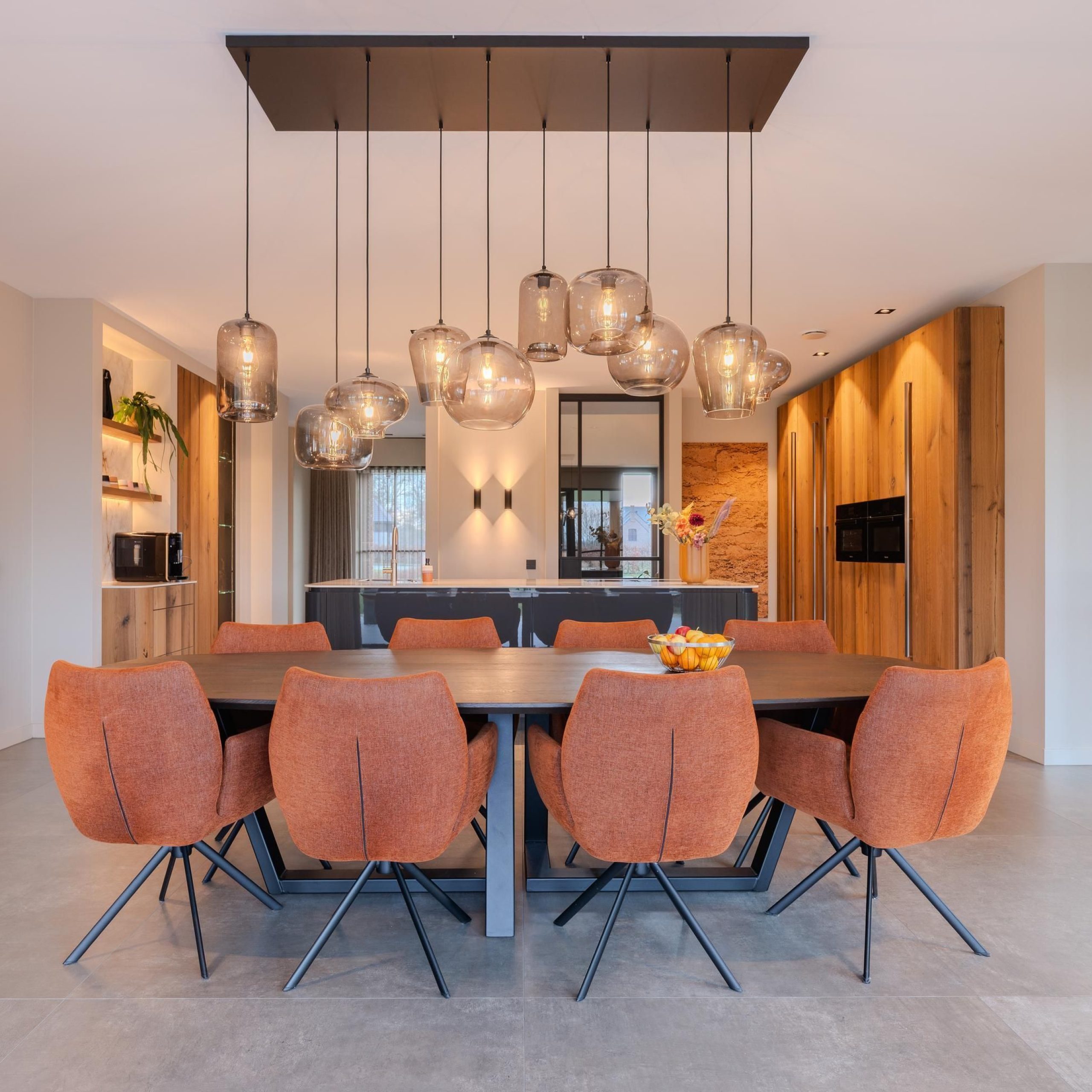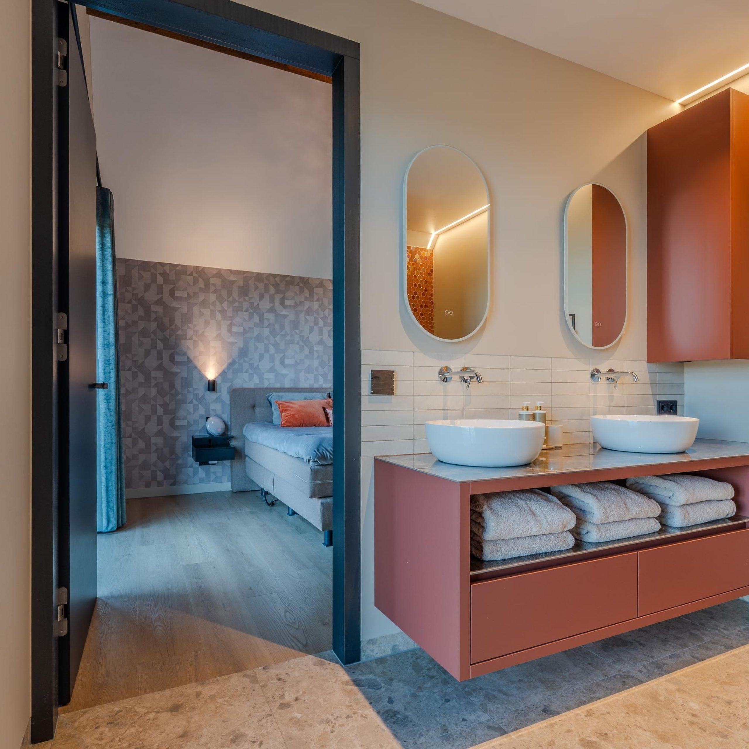De kracht van dit project zit in de balans tussen rust en karakter. Warme houttinten worden gecombineerd met strakke lijnen, zachte kleuren en uitgesproken accenten. Denk aan het maatwerk in de keuken, de geïntegreerde kastenwanden en de verfijnde afwerking in de badkamer.